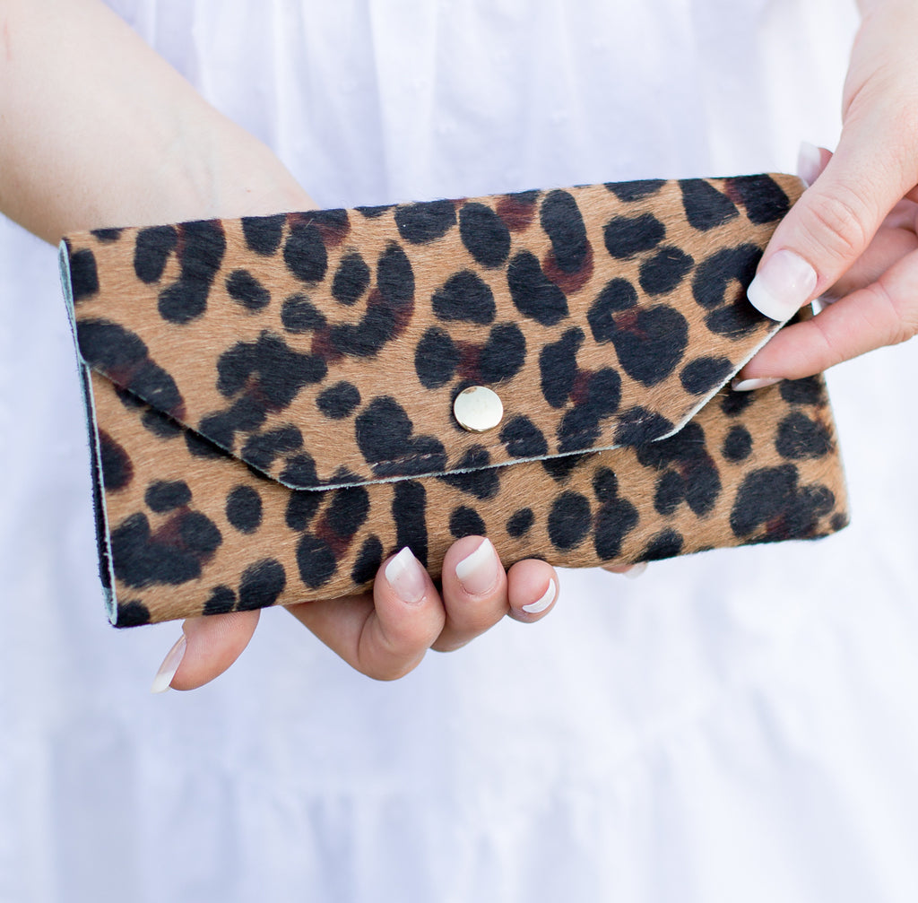 A best seller! Fun and functional premium cowhide wallet. Slim to fit in small handbags, even fits our Caroline Crossbody. Features 4 interior card pockets and 1 interior cash pocket and a secure snap closure to keep it all safe.